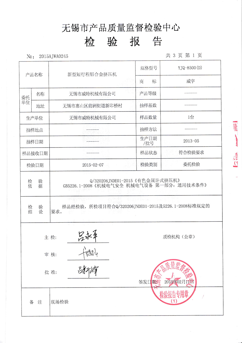 當(dāng)前位置: 首頁(yè) >> 質(zhì)量保證 | 短行程鋁擠壓機(jī) |