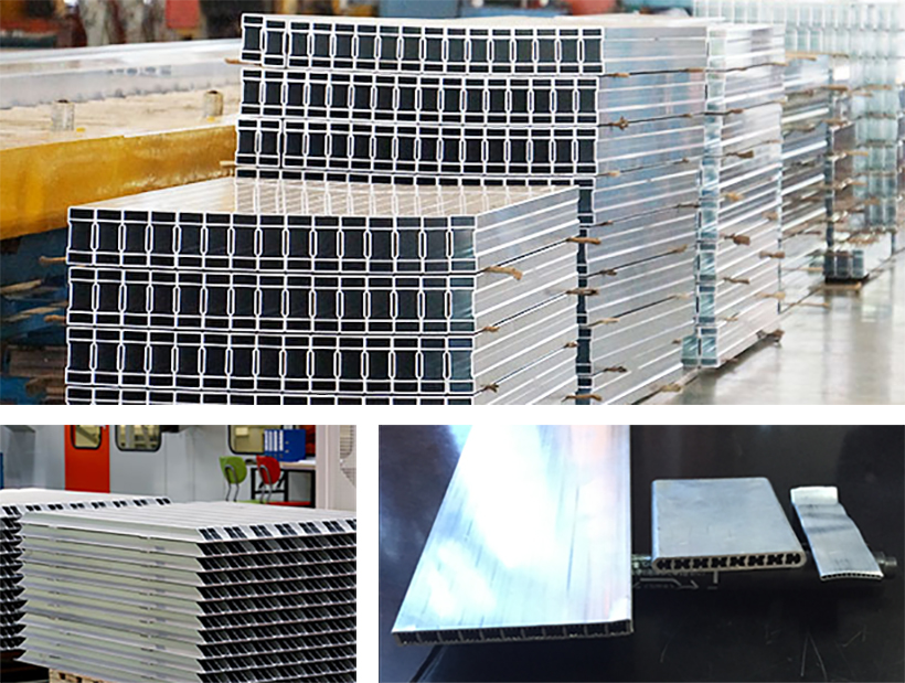 In terms of automobile manufacturing, lateral plate hollow profiles, jamb profile container wallboard profiles, slotted wallboard and other compartment plates as well as heat dissipation flat tubes in automobile radiators and other auto parts can all be produced by our extrusion presses.